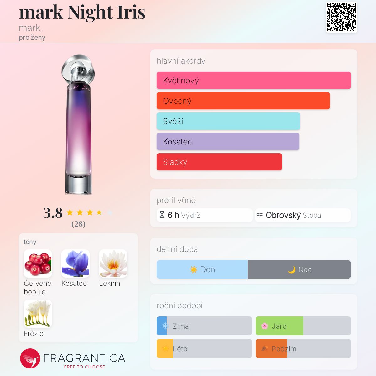 mark Night Iris podle mark. je Floral Fruity vůně pro ženy. mark Night Iris byl/a uveden/a v roce 2012.